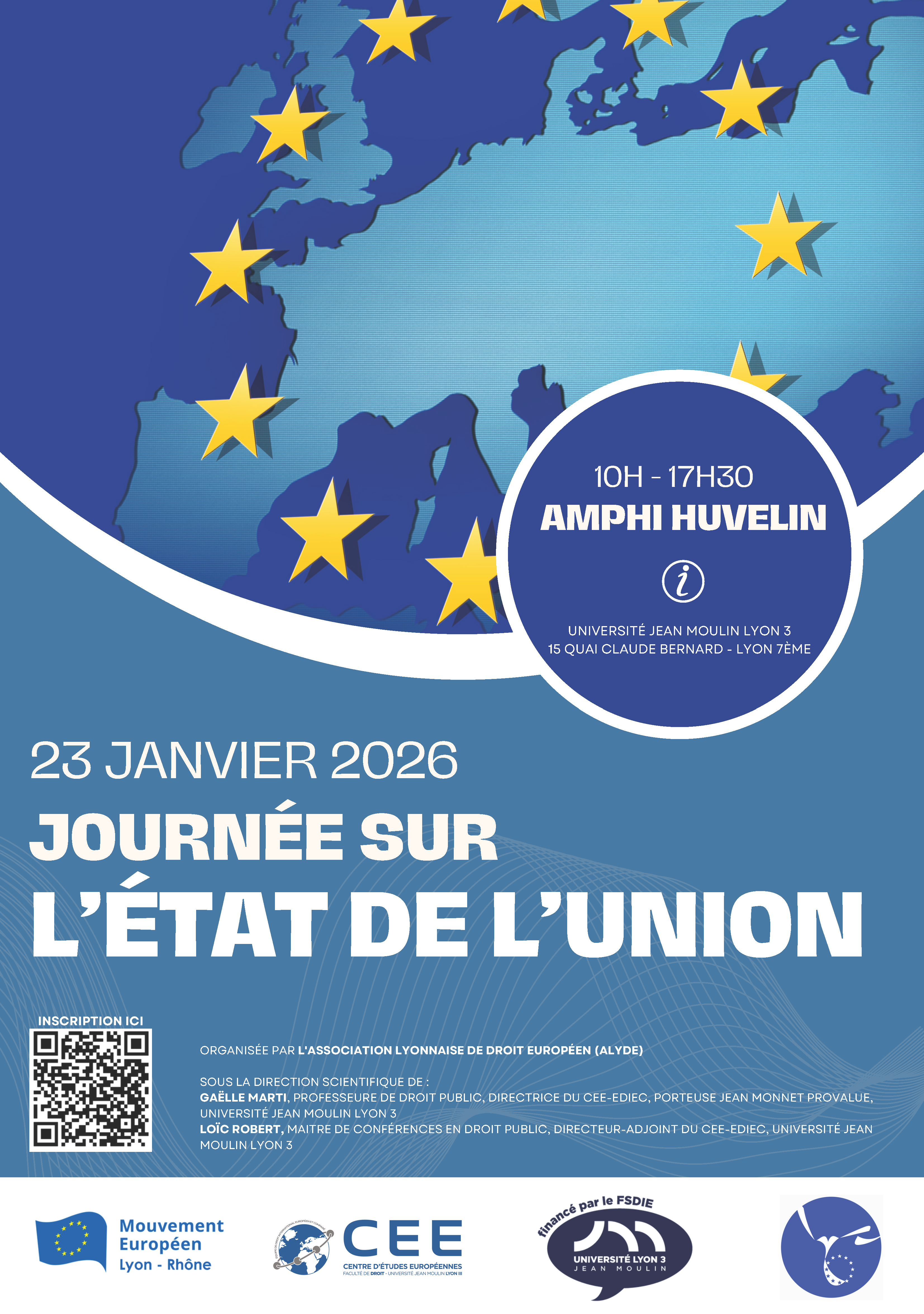 Colloque organisé par l'ALYDE, en partenariat avec le Mouvement européen Lyon-Rhône et avec le soutien du CEE-EDIEC et de l'Université Jean Moulin Lyon 3, sous la direction scientifique de Loïc ROBERT et Gaëlle MARTI