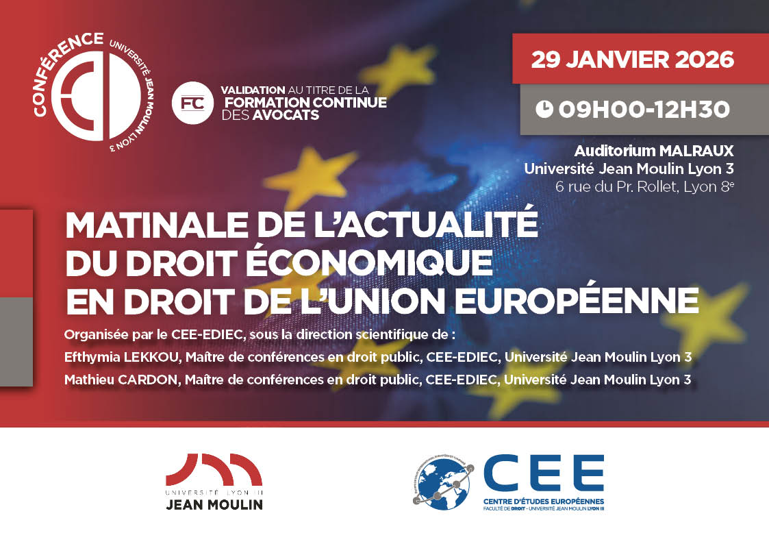 Conférence organisée par le CEE-EDIEC sous la direction d'Efthymia LEKKOU et Mathieu CARDON, Maîtres de conférences en droit public, Université Jean Moulin Lyon 3