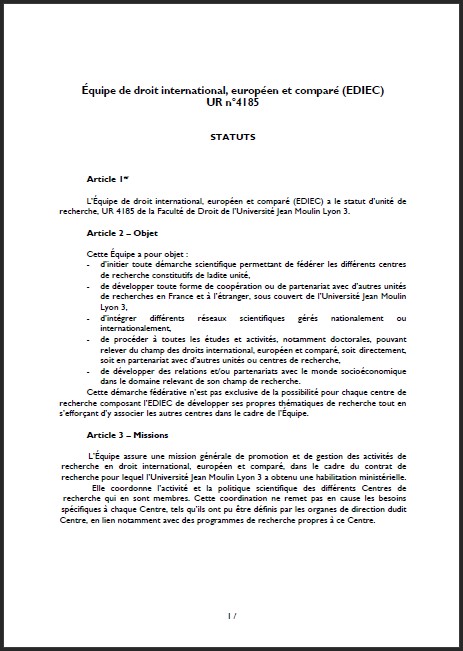 L’Équipe de droit international, européen et comparé (EDIEC, UR 4185) est une des 6 unités de recherche de la Faculté de droit.