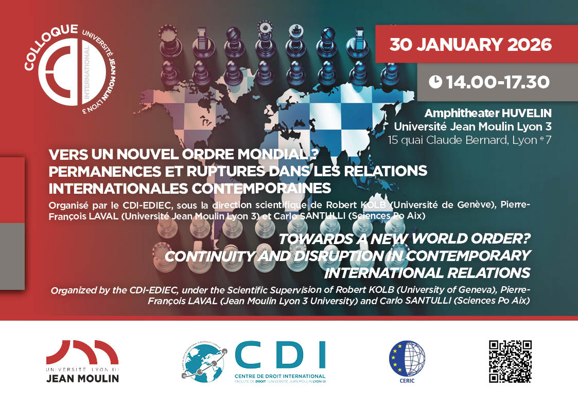 Sous la direction scientifique de Pierre-François LAVAL (Professeur de droit public, CDI-EDIEC, Université Jean Moulin Lyon 3), Robert KOLB (Professeur à l'Université de Genève) et Carlo SANTULLI (Professeur à Sciences Po Aix, CERIC)